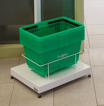 Conformément au souhait du client, il nous a été possible d'adapter le support de stockage des paniers de magasinage.