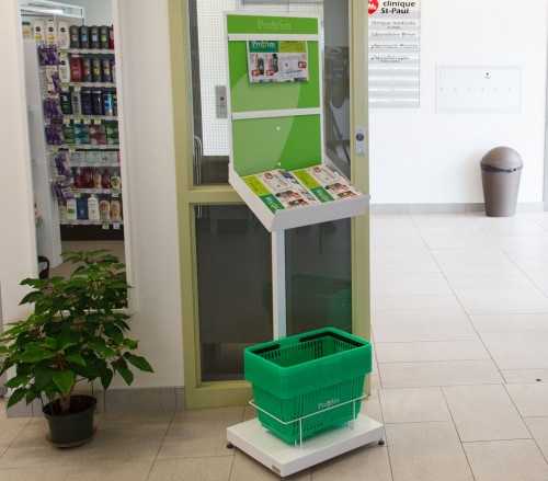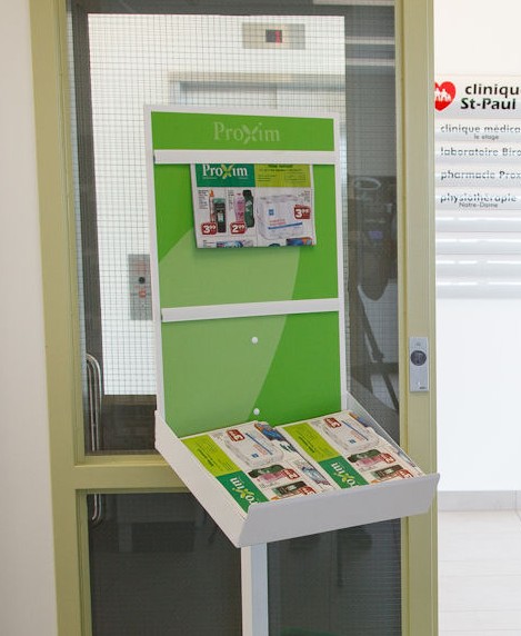 Le design de ce présentoir a été pensé afin de permettre l'affichage d'un exemplaire déplié et un inventaire de circulaires.